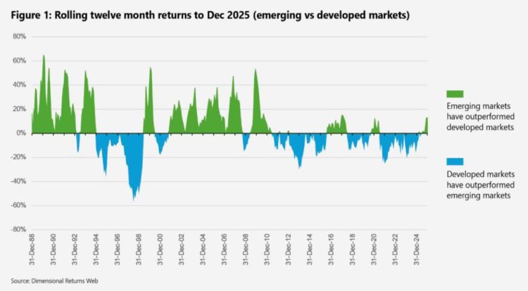 - Although developed markets have largely been winning over the last decade, the emerging markets were generally outperforming developed markets in 2025.