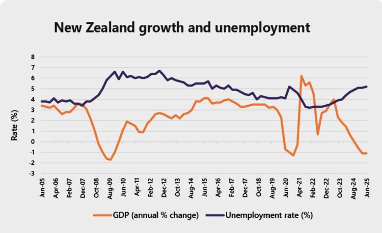 Since July 2024, the OCR has fallen from 5.5% to 2.5%, and in its 8 October announcement the RBNZ indicated it remains open to further reductions in future if conditions require it. At these much lower levels, we can reasonably expect lower financing costs to be a boost to New Zealand business activity, which would eventually flow through into higher growth and lower unemployment.